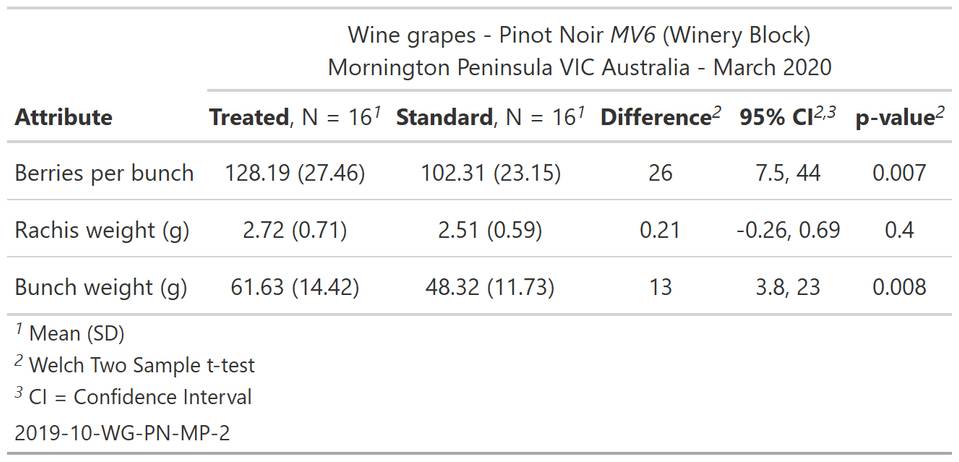 During the 2019-20 growing season, a trial was conducted on the Mornington Peninsula to measure the impact of a biostimulant program on the yield of Pinot Noir.